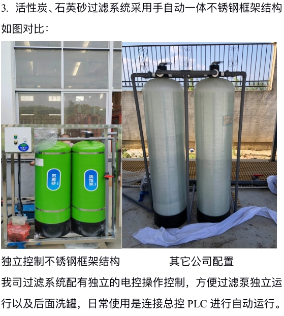 渣,故待压滤清⽔澄清打开对应电控开关将⽔抽⾄设备经⽯英砂、活性炭过滤系